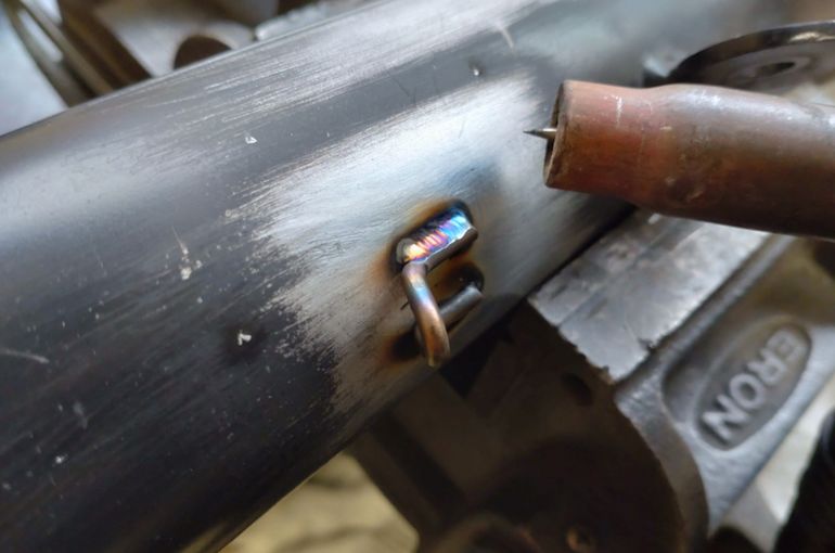 上下2箇所のスプリングフックと空燃比センサーを取付けるボス製作も必要となります。